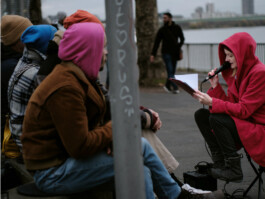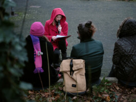 Nach den Begegnungen hält katharinajej ihre Erfahrungen schriftlich fest. In ihren Aufzeichnungen verweben sich die Geschichten der Menschen mit ihrer eigenen. Als Rotkäppchen liest sie ihre Texte in der Nähe der besuchten Orte vor. Die Erzählungen handeln von Sucht und Ohnmacht, von Gras, Crack und Heroin. Zwischen Liebesgeständnissen und Prügelei wird gedealt, geweint und geteilt.